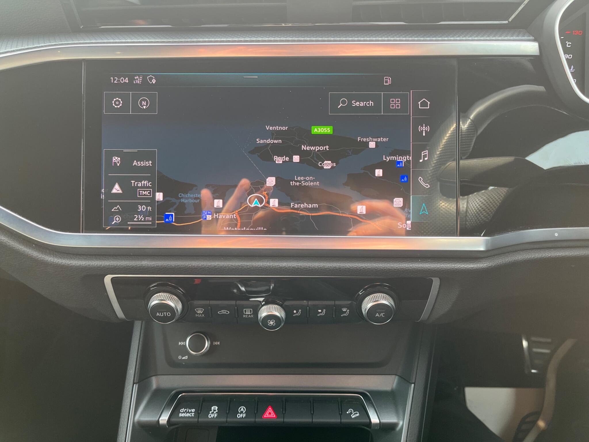 - Detail in Dashboard Around the MMI Touch Colour Display in Glass Look - Black with Surround in Aluminium Look